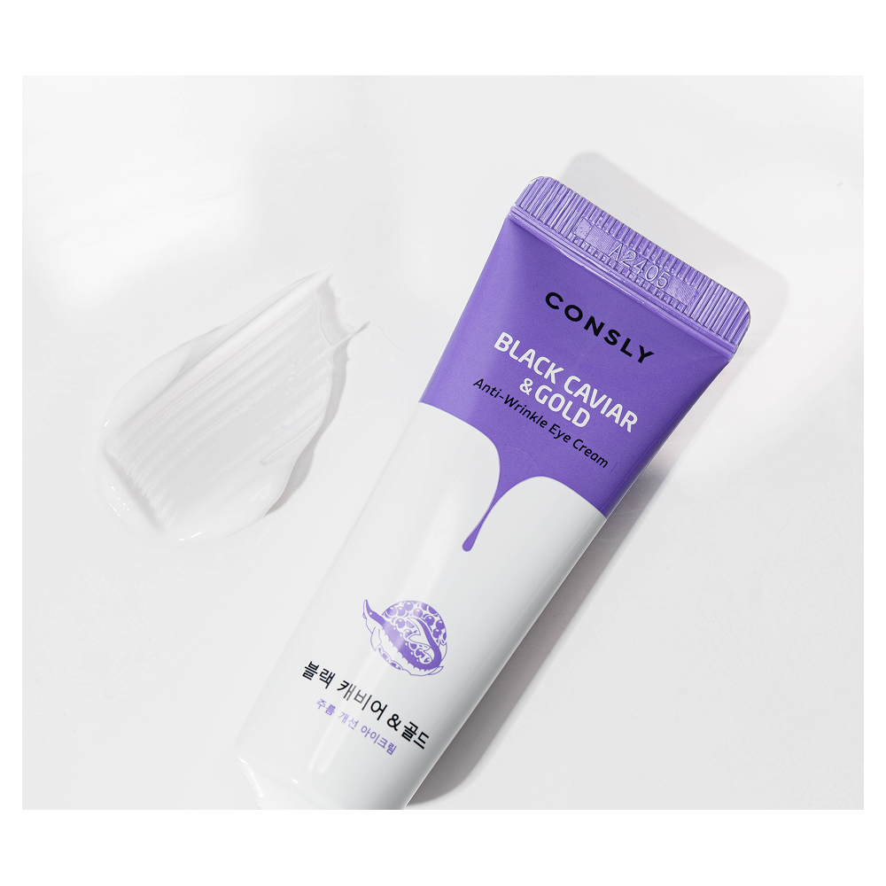 Крем для ухода за кожей вокруг глаз, обогащенный черной икрой и золотом, помогает уменьшить глубокие и мелкие морщины, а также стимулирует синтез коллагена и эластина, придавая коже упругость и свежий вид. Ниацинамид и аденозин в составе продукта корректируют и предотвращают возрастные изменения кожи вокруг глаз. Крем содержит экстракты листьев хурмы, ромашки, мяты, базилика и периллы, которые оказывают антиоксидантное воздействие, сохраняя молодость и здоровье кожи. Благодаря легкой текстуре крем быстро впитывается и подходит для всех типов кожи, включая чувствительную область вокруг глаз. Применение: утром и вечером наносите крем на очищенную кожу вокруг глаз. Меры предосторожности: избегать попадания в глаза, в случае возникновения раздражения прекратить использование. INGREDIENTS/Состав: Water, Mineral Oil, Glycerin, Caprylic/Capric Triglyceride, Niacinamide, Glyceryl Stearate, Cetyl Alcohol, Dimethicone, Palmitic Acid, Stearic Acid, Petrolatum, Polysorbate 60, Sorbitan Sesquioleate, PEG-100 Stearate, Stearyl Alcohol, Phenoxyethanol, Carbomer, Triethanolamine, Allantoin, Chlorphenesin, Fragrance, Myristyl Alcohol, Adenosine, Butylene Glycol, Lauryl Alcohol, Disodium EDTA, 1,2-Hexanediol, Myristic Acid, Sodium Hyaluronate, Caviar Extract, Diospyros Kaki Leaf Extract, Mentha Rotundifolia Leaf Extract, Chamomilla Recutita (Matricaria) Leaf Extract, Monarda Didyma Leaf Extract, Ocimum Basilicum (Basil) Leaf Extract, Perilla Ocymoides Leaf Extract, Gold. Изготовитель: "EDENFARM CO., LTD.", 3, Hwanggeum-ro 323beon-gil, Yangchon-eup, Gimpo-si, Gyeonggi-do, Республика Корея.