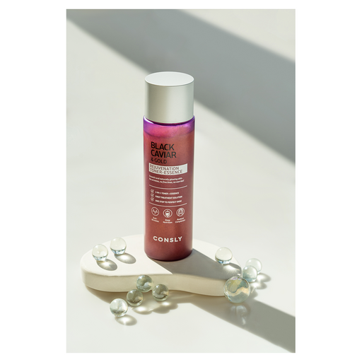 Средство 2-в-1 – тонер+эссенция – моментально восстановит уровень увлажненности кожи, поддержит ее естественный защитный барьер и наполнит полезными веществами. Используйте это средство, выполняющее функции тонера и сыворотки, сразу после умывания – простой и быстрый шаг для более совершенной кожи день за днем. Омолаживающий тонер-эссенция интенсивно питает кожу и сокращает морщины и иные признаки возрастных изменений. Черная икра, богатая витаминами, минералами, аминокислотами и Омега-3 кислотами, пробуждает молодость кожи, восстанавливая ее изнутри и замедляя старение. Золото в составе тонера-эссенции удерживает влагу в коже и активизирует процессы ее естественного восстановления. Регулярное применение тонера-эссенции продлит молодость кожи, сделает ее более гладкой и упругой