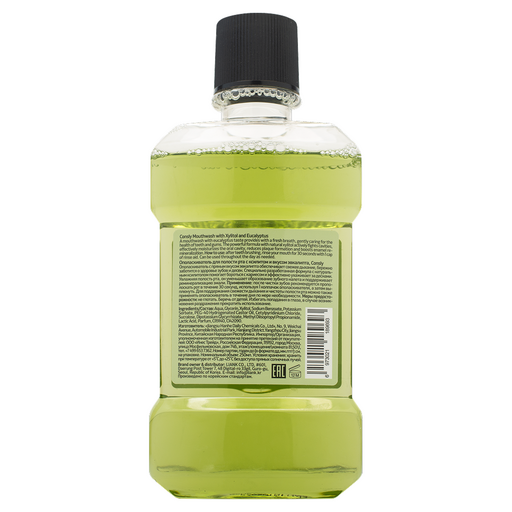 Ополаскиватель с пряным вкусом эвкалипта обеспечивает свежее дыхание, бережно заботится о здоровье зубов и десен. Специально разработанная формула с натуральным ксилитолом помогает бороться с кариесом и эффективно ухаживает за деснами. Увлажняя полость рта, он уменьшает образование зубного налета и поддерживает реминерализацию эмали. Применение: после чистки зубов рекомендуется прополоскать рот в течение 30 секунд, используя 1 колпачок ополаскивателя, а затем выплюнуть. Для поддержания свежести дыхания и чистоты полости рта можно также применять ополаскиватель в течение дня по мере необходимости. Меры предосторожности: не глотать. Беречь от детей. Избегать попадания в глаза, в случае возникновения раздражения прекратить использование. Ingredients/Состав: Aqua, Glycerin, Xylitol, Sodium Benzoate, Potassium Sorbate, PEG-40 Hydrogenated Castor Oil, Cetylpyridinium Chloride, Sucralose, Dipotassium Glycyrrhizate, Methyl Diisopropyl Propionamide, Lactic Acid, Parfum, CI19140, CI42090. Изготовитель: «Jiangsu Hanhe Daily Chemicals Co., Ltd», No. 9, Weichai Avenue, Automobile Industrial Park, Hanjiang District. Yangzhou City, Jiangsu Province, Китайская Народная Республика.