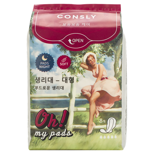 Ультратонкие ночные прокладки с крылышками Consly Oh! My Pads обеспечивают надежную защиту и комфорт во время менструации. Их уникальный дизайн делает их незаметными, сохраняя уверенность и безопасность. Благодаря высокой впитываемости и дышащему материалу, прокладки оставляют кожу сухой на протяжении всей ночи, предотвращая неприятные ощущения. Они эффективно защищают от протеканий и благодаря анионовому чипу поддерживают чистоту и гигиеничность. Применение: удалите защитную бумагу с клеевой полосы и закрепите прокладку на внутренней поверхности белья. Для поддержания гигиены рекомендуется менять прокладку каждые 4-6 часов. Утилизируйте прокладки, заворачивая их в специальные гигиенические пакеты и выбрасывая в мусорный контейнер. Меры предосторожности: в случае раздражения, прекратите использование и проконсультируйтесь с врачом. INGREDIENTS/Состав: Airlaid Paper, SAP Paper, Perforated Hot Air Through Nonwoven, Hot Air Through Waterproof Nonwoven, Anion Chip, White Breathable PE Film, White Printed Packing PE Film, Back Release Paper, Wing Release Paper, Fast Easy Open Tape, Back Glue, Position Glue. Изготовитель: «Jinjiang Rongxin Maternal and Child Supplies Co.,Ltd», No.3, Xinya Road, Economic Development Zone (Wuli) Jinjiang, Fujian, Китай.