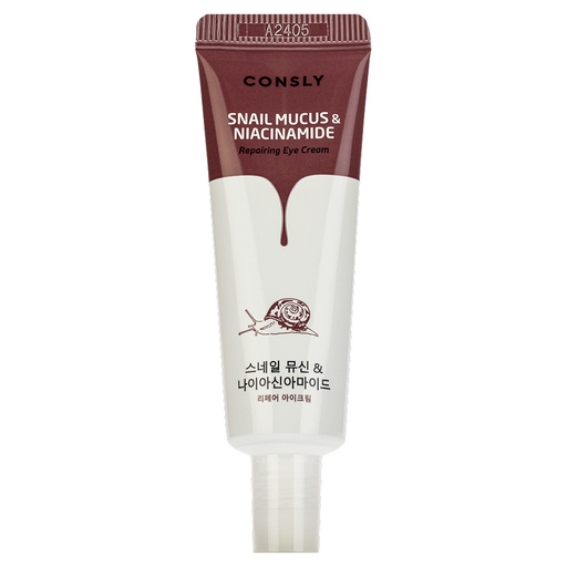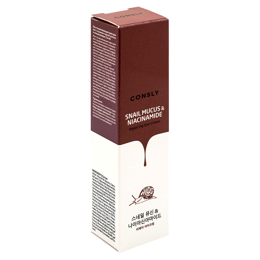 Восстанавливающий крем для век с муцином улитки и ниацинамидом обеспечивает гладкость, омолаживает, укрепляет эпидермис и повышает плотность. Основой этого крема является муцин улитки, который уже давно считается легендарным компонентом корейской косметики. Ниацинамид и муцин черной улитки активно обновляют область вокруг глаз, придавая сияние и жизненную силу, а также удерживают влагу и предотвращают старение. Экстракты хурмы, ромашки, мяты, базилика и периллы обогащают крем, поддерживая уровень увлажнения и защищая кожу. Легкая текстура обеспечивает быстрое впитывание и максимальный комфорт в уходе за кожей. Применение: утром и вечером наносите крем на очищенную кожу вокруг глаз. Меры предосторожности: избегать попадания в глаза, в случае возникновения раздражения прекратить использование. INGREDIENTS/Состав: Water, Mineral Oil, Glycerin, Caprylic/Capric Triglyceride, Niacinamide, Glyceryl Stearate, Cetyl Alcohol, Dimethicone, Palmitic Acid, Stearic Acid, Petrolatum, Polysorbate 60, Sorbitan Sesquioleate, PEG-100 Stearate, Stearyl Alcohol, Phenoxyethanol, Carbomer, Triethanolamine, Allantoin, Chlorphenesin, Fragrance, Myristyl Alcohol, Adenosine, Butylene Glycol, Lauryl Alcohol, Disodium EDTA, Snail Secretion Filtrate, 1,2-Hexanediol, Myristic Acid, Sodium Hyaluronate, Diospyros Kaki Leaf Extract, Mentha Rotundifolia Leaf Extract, Chamomilla Recutita (Matricaria) Leaf Extract, Monarda Didyma Leaf Extract, Ocimum Basilicum (Basil) Leaf Extract, Perilla Ocymoides Leaf Extract. Изготовитель: "EDENFARM CO., LTD.", 3, Hwanggeum-ro 323beon-gil, Yangchon-eup, Gimpo-si, Gyeonggi-do, Республика Корея.