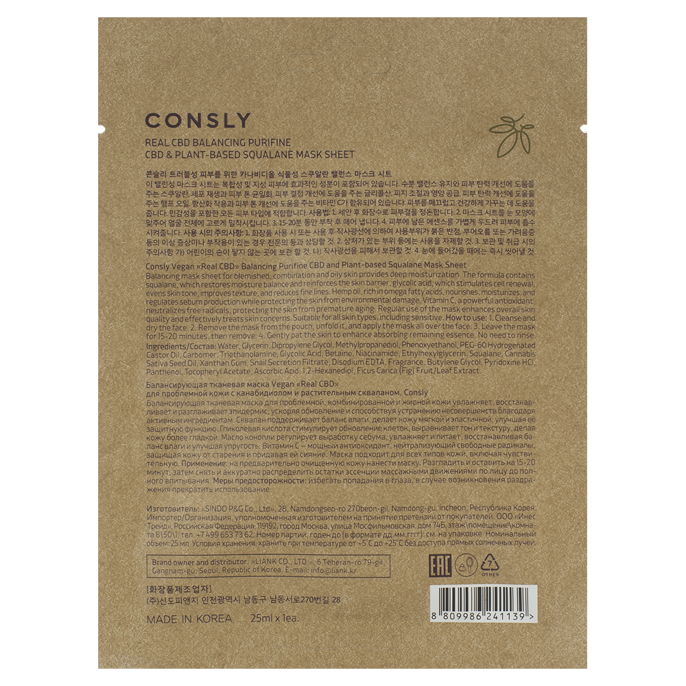 Балансирующая тканевая маска для проблемной, комбинированной и жирной кожи увлажняет, восстанавливает и разглаживает эпидермис, ускоряя обновление и способствуя устранению несовершенств благодаря активным ингредиентам. Сквалан поддерживает баланс влаги, делает кожу мягкой и эластичной, улучшая её защитную функцию. Гликолевая кислота стимулирует обновление клеток, выравнивает тон и текстуру, делая кожу более гладкой. Масло конопли регулирует выработку себума, увлажняет и питает, восстанавливая баланс влаги и улучшая упругость. Витамин С — мощный антиоксидант, нейтрализующий свободные радикалы, защищая кожу от старения и придавая ей сияние. Маска подходит для всех типов кожи, включая чувствительную. Применение: на предварительно очищенную кожу нанести маску. Разгладить и оставить на 15-20 минут, затем снять и аккуратно распределить остатки эссенции массажными движениями по лицу до полного впитывания. Меры предосторожности: избегать попадания в глаза, в случае возникновения раздражения прекратить использование. Ingredients/Состав: Water, Glycerin, Dipropylene Glycol, Methylpropanediol, Phenoxyethanol, PEG-60 Hydrogenated Castor Oil, Carbomer, Triethanolamine, Glycolic Acid, Betaine, Niacinamide, Ethylhexylglycerin, Squalane, Cannabis Sativa Seed Oil, Xanthan Gum, Snail Secretion Filtrate, Disodium EDTA, Fragrance, Butylene Glycol, Pyridoxine HCl, Panthenol, Tocopheryl Acetate, Ascorbic Acid, 1,2-Hexanediol, Ficus Carica (Fig) Fruit/Leaf Extract. Изготовитель: «SINDO P&G Co., Ltd», 28, Namdongseo-ro 270beon-gil, Namdong-gu, Incheon, Республика Корея.