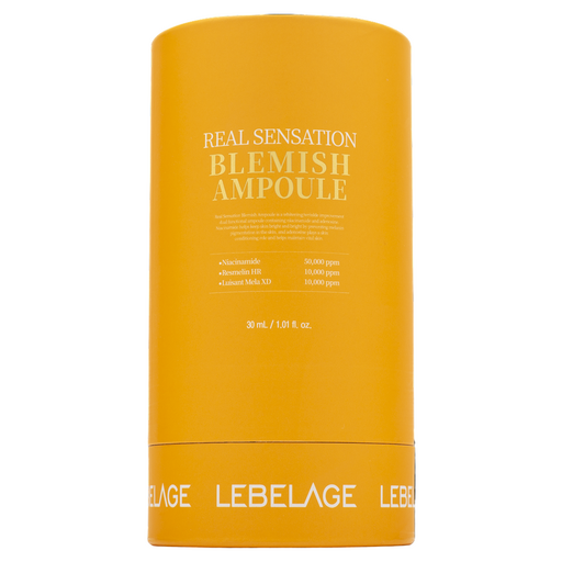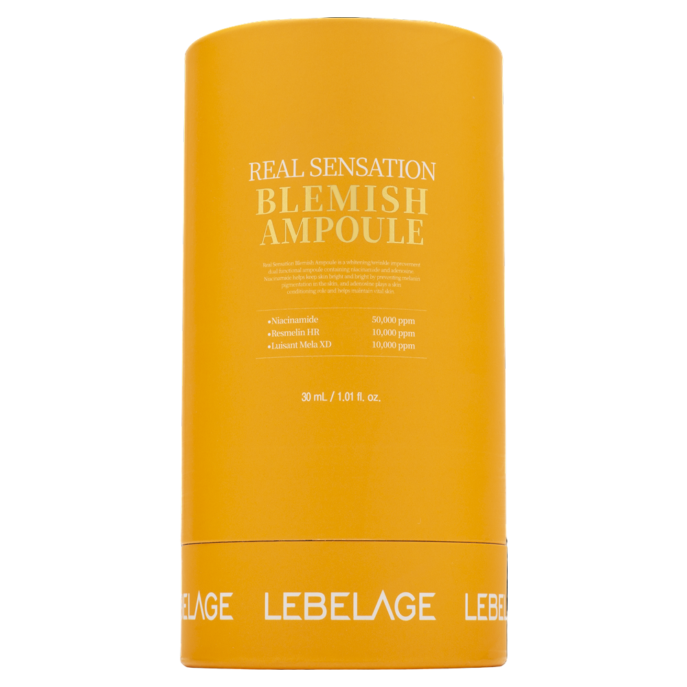Откройте для себя секрет реально исключительной кожи с ампульным средством LEBELAGE Real Sensation Blemish Ampoule. Этот мощный продукт, созданный для борьбы с несовершенствами кожи, превращает ваш уход в настоящее удовольствие. Каждая капля этой ампулы наполнена магией ингредиентов, которые работают в совершенстве для достижения безупречного и ровного тона кожи. - Resmelin HR — запатентованный компонент, направленный на мощное выравнивание. Защищает кожу от фотостарения и продлевает молодость, укрепляет барьерные функции. - Запатентованный комплекс Luisant Mela XD™️ - омолаживает, обладает сильным антиоксидантным действием, предотвращает потерю упругости, выводит свободные радикалы, уменьшает образование морщин, выравнивает тон. - Ниацинамид: устраняет тусклость и бледность кожи, снимает усталость и заряжает клетки энергией. - Транексамовая кислота выступает в роли эффективного выравнивающего компонента, благодаря которому цвет лица становится свежим и отдохнувшим, имеющиеся несовершенства постепенно устраняются, а новые не появляются. Кроме того, транексамовая кислота не повышает чувствительность кожи к ультрафиолету. - Экстракты юдзу, мандарина и лайма помогают стимулировать клеточный обмен, освежая кожу и придавая ей здоровый сияющий вид. - Гидролизированный глутатион: Этот мощный антиоксидант помогает бороться с окислительным стрессом, выравнивает кожу и придает ей молодость и свежесть. Для всех типов кожи. Применение: нанести несколько капель сыворотки на очищенную и тонизированную кожу лица, шеи и декольте легкими массажными движениями. Для достижения максимального эффекта рекомендуется комбинировать с кремом из той же линейки. Меры предосторожности: избегать попадания в глаза, в случае возникновения раздражения прекратить использование. Состав: см. на упаковке после слова Ingredients. Изготовитель: "KOREA C&B Co., Ltd.", 60, Saebeol-ro, Bupyeong-gu, Incheon, Республика Корея.